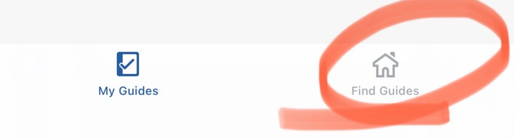 - In the bottom right hand corner, you will see Find Guides. It is a little house icon. Tap that.